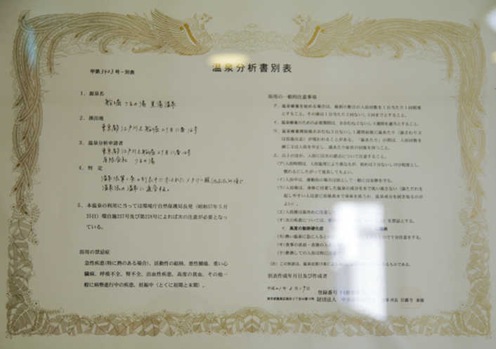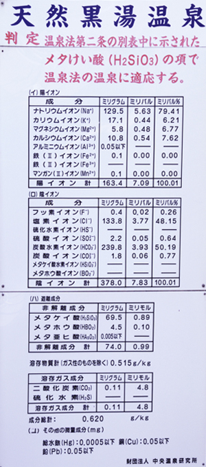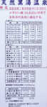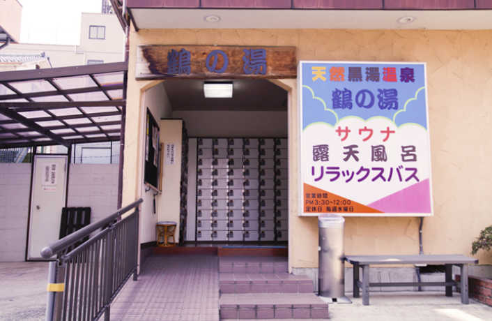 鶴の湯 空も見える 天然黒湯温泉 自家源泉100%かけ流し 天然温泉浴槽・露天風呂 リラックス風呂・サウナ フロントにて、石鹸・タオル・シャンプー・リンス・剃刀・その他色々、販売致しております。 お車でお越しの方は、フロントにお声かけ下さい。駐車スペースを3台分、ご用意しております。 入浴料 大人 550円 小学生 200円 幼児 100円 サウナ 350円 飲み物各種 ビール 300円 牛乳 150円 コーヒー牛乳 150円 ジュース 150円 水 150円 アイス 170円 鶴の湯外観 玄関 下足箱 フロント 待合 ドリンク他 温泉分析書 温泉分析書 温泉成分表記 Top 鶴の湯 お知らせ 施設案内 アクセス
